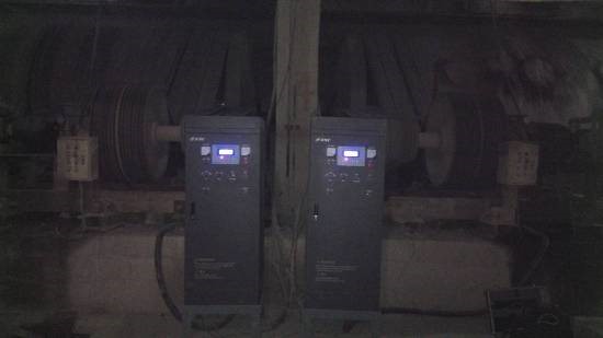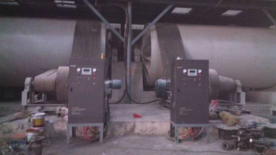 少數球磨機無輔機,在裝料結束,或者裝有料體的轉筒停機較久導致料體沉淀底部,此時啟動旋轉到90度時須求轉矩最大,如繼續運行會造成皮帶打滑或損傷皮帶,需要立即停止電機運行,轉筒由于重力向相反回轉,待再次因重力向正傳方向旋轉時再次啟動電機,變頻器以轉速跟蹤再啟動工作,如蕩秋千模式,反復甩磨,來回多次即可將轉筒在較小的力矩下啟動起來。此種工作位甩磨啟動。需要將變頻器設置到自由停機和轉速跟蹤再啟動模式。